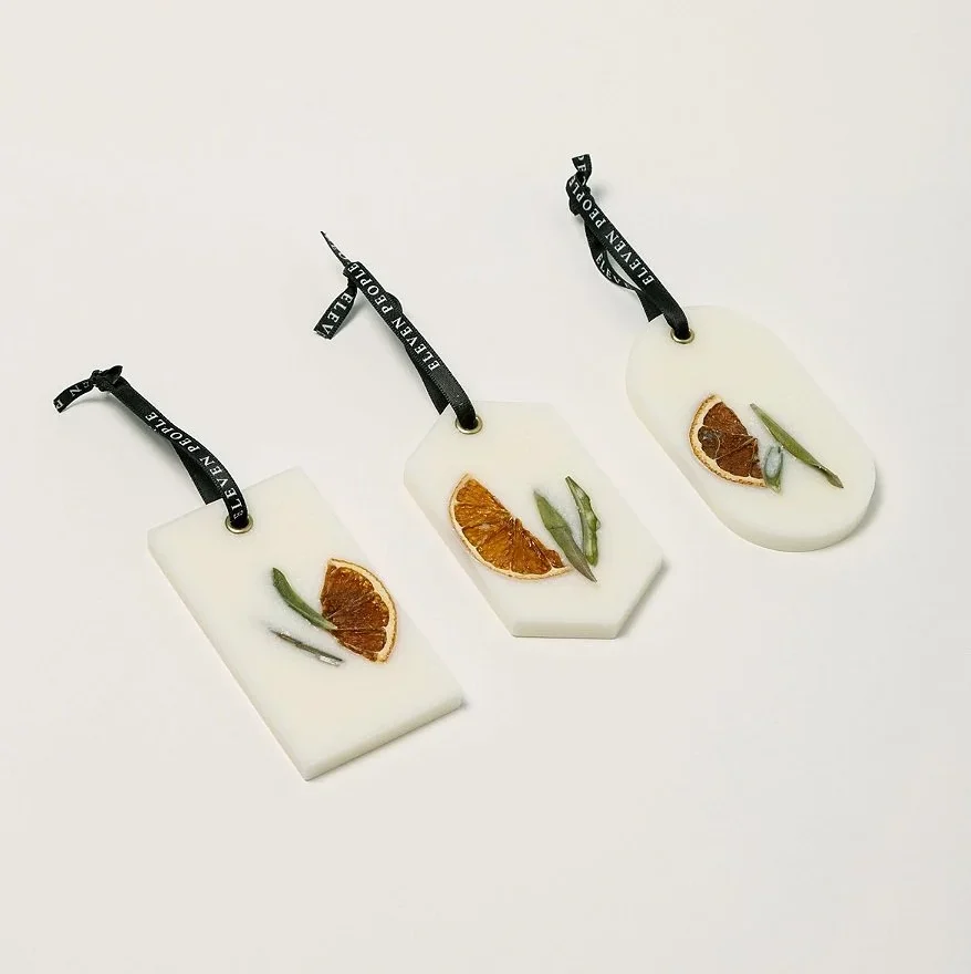 Porta freschezza e stile nei tuoi spazi con questo raffinato cofanetto di 3 profumatori solidi per armadi e cassetti, realizzati artigianalmente in Spagna con cera vegetale di soia naturale e decorati con elementi botanici.