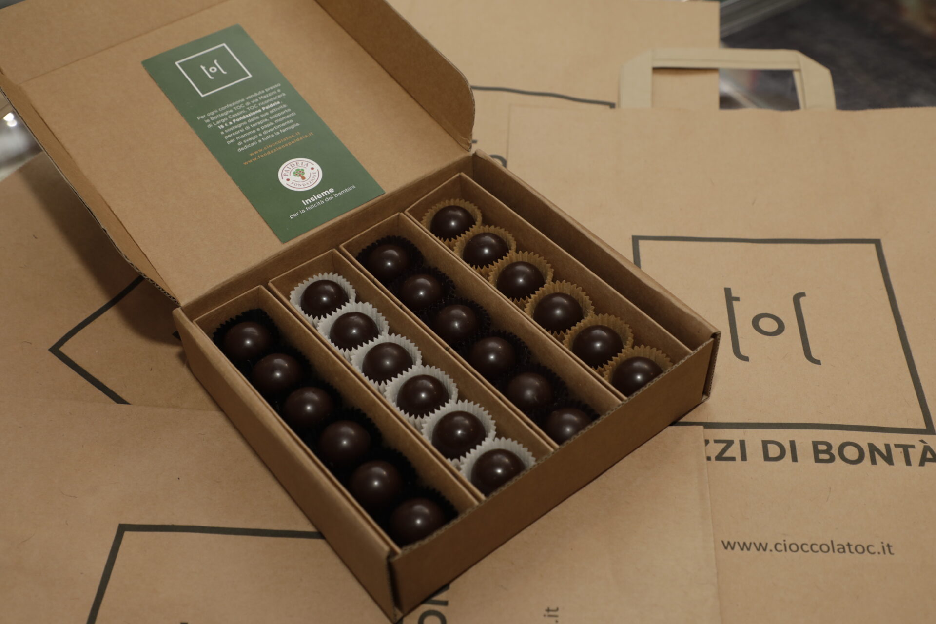 Per ogni confezione venduta Toc riconoscerร โฌ15 a Fondazione Paideia a sostegno delle sue attivitร .