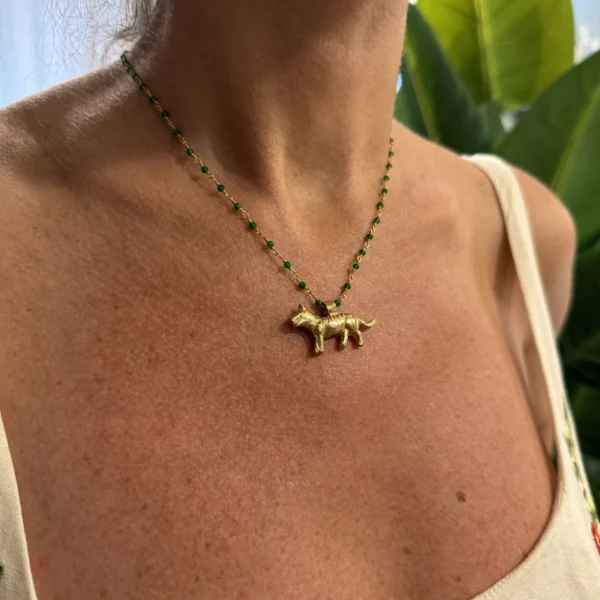 Collana Rosario Tigre realizzata a mano con pietre di giada e ciondolo in bronza