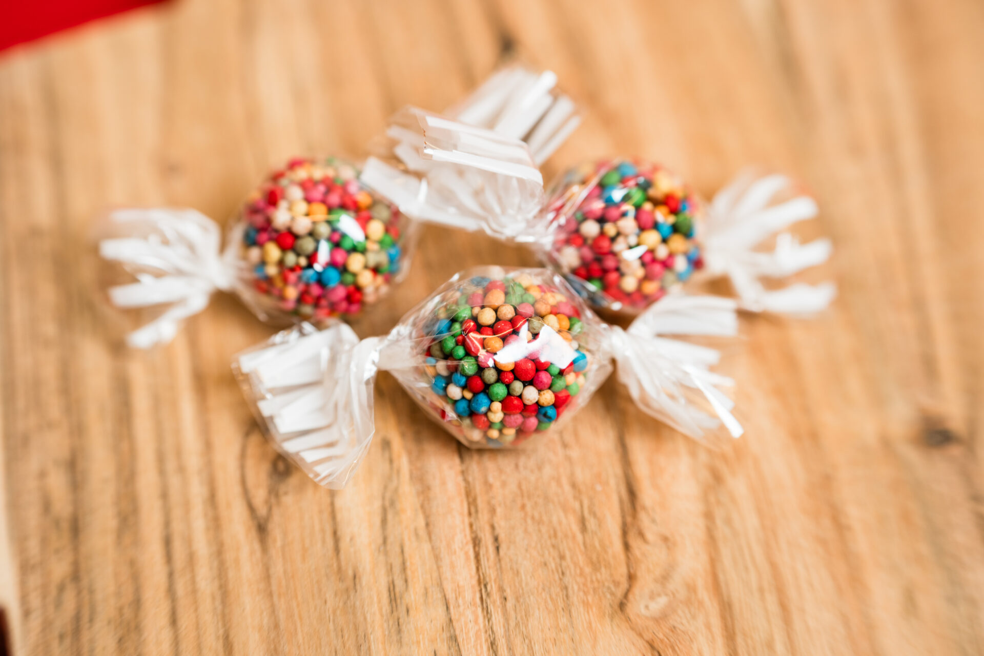I tipici cioccolatini piemontesi si vestono di Natale per Paideia: nocciole avvolte da cioccolato fondente e impreziosite da un guscio di zuccherini colorati.