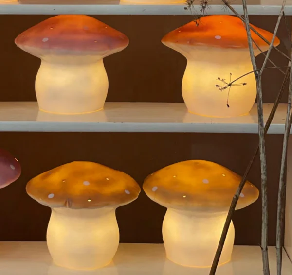 Lampada a LED per la cameretta dei bambini. Questa grande lampada a forma di fungo diffonde una luce eccezionalmente soffusa. Permette ai bambini di dormire sonni tranquilli e allo stesso tempo รจ un elemento decorativo per la cameretta, sia da accesa che da spenta. Realizzata e dipinta a mano.