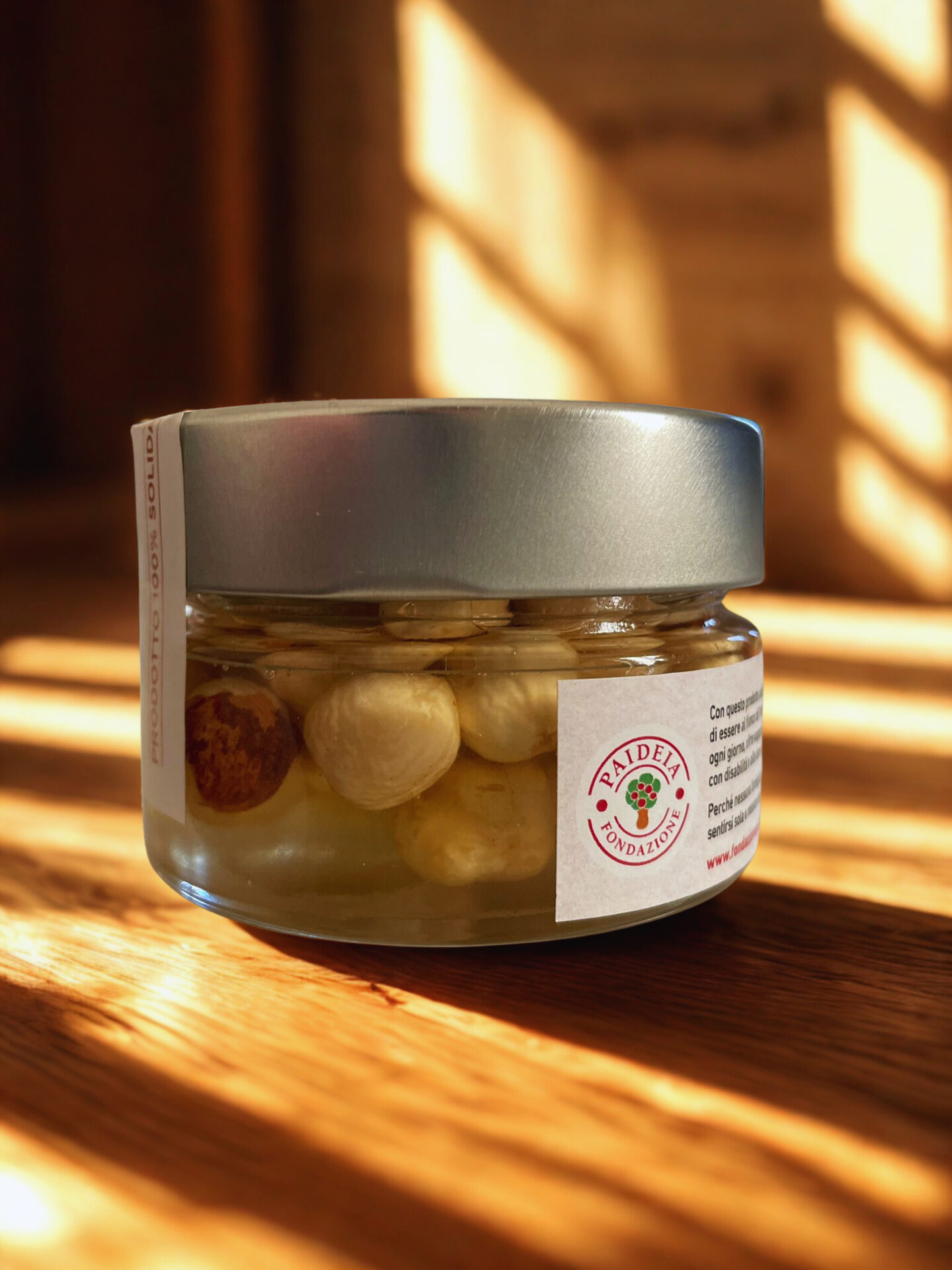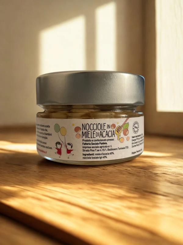 Le nocciole piemontesi, selezionate e tostate con cura, incontrano la dolcezza delicata del miele dโacacia, dando vita a un connubio naturale ed equilibrato.