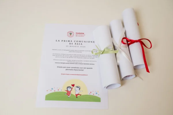 Questa pergamena personalizzata รจ un simbolo di crescita e impegno, capace di rendere ancora piรน speciale questo momento importante, aiutando i bambini e le famiglie sostenute da Fondazione Paideia.