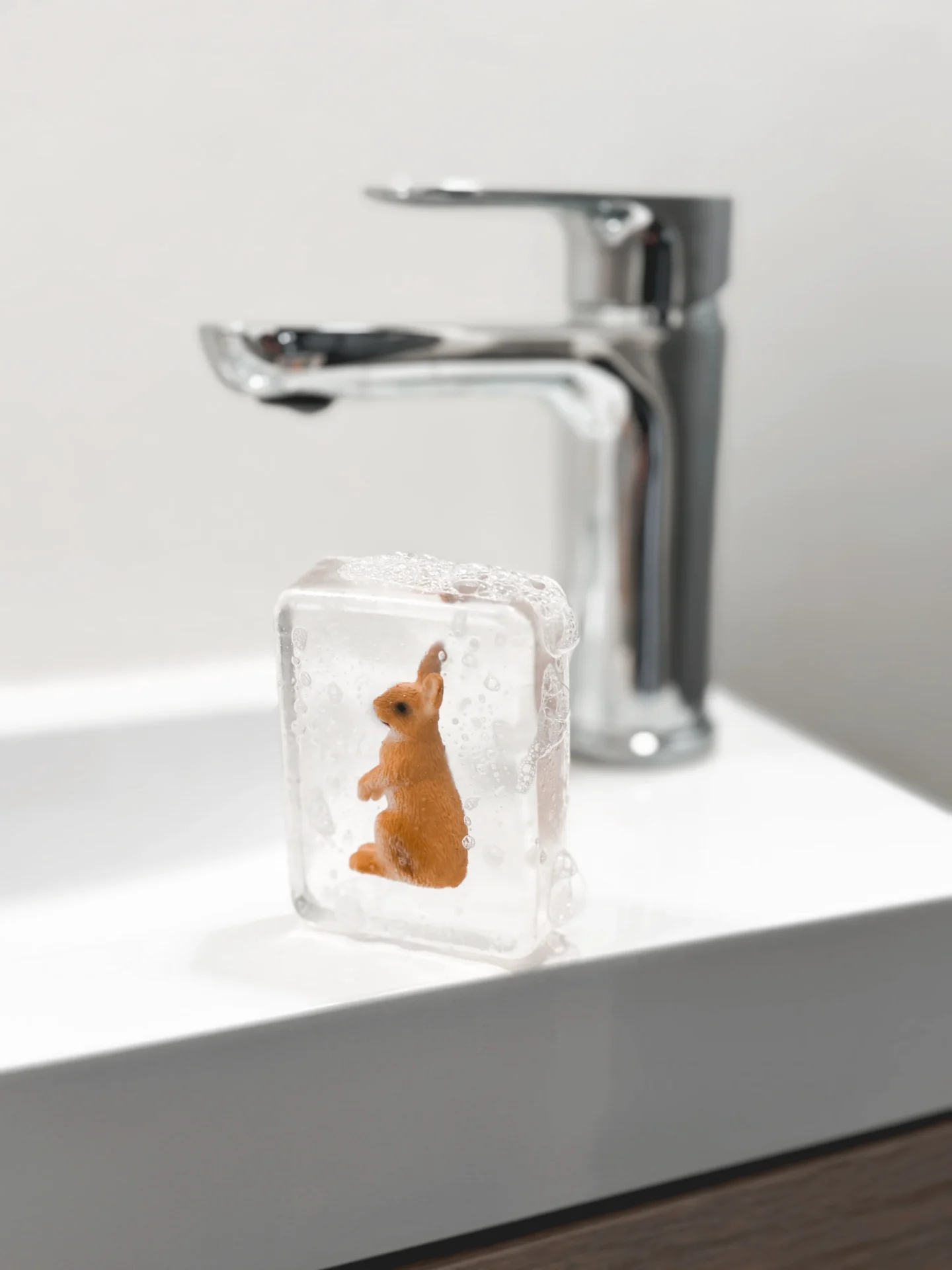 Sapone trasparente fatto a mano con statuetta di coniglio