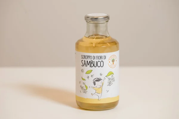 I delicati fiori di sambuco selvatico, raccolti in primavera nei boschi accanto alla Fattoria Sociale Paideia, vengono messi in infusione con limoni interi biologici per ottenere uno sciroppo profumato e naturalmente dolce.