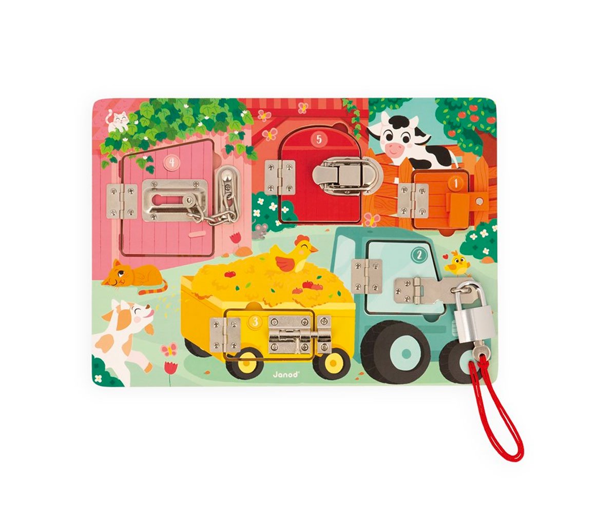 Dietro ogni porticina, simpatici animali della fattoria da scoprire per imparare colori, numeri e logica divertendosi!
